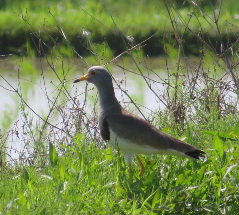田圃の畦道で遊ぶケリ夫婦