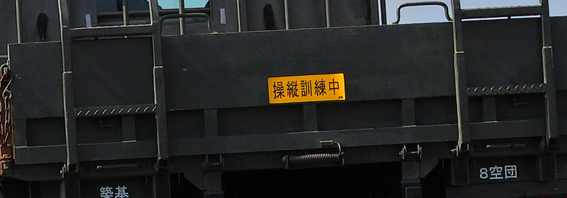 トラックの後部に操縦訓練中と張り紙